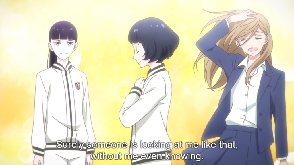 In the end, both of these episodes are strong reminders of why Kageki Shojo!! continues to be a fantastic series. It not only successfully portrays the intense, heightened drama that already latently exists in high school, but centers that between young women (by this, I mean anyone who is socialized female, and definitely mean maginalized genders), most of whom experience some level of queer, non-romantic sapphicism in their friendships.